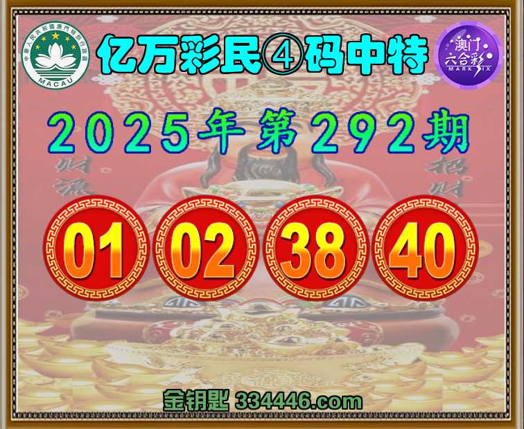 292期:《亿万彩民》 🧶④码中特🧶【01.02.38.40】开:02准上榜高手