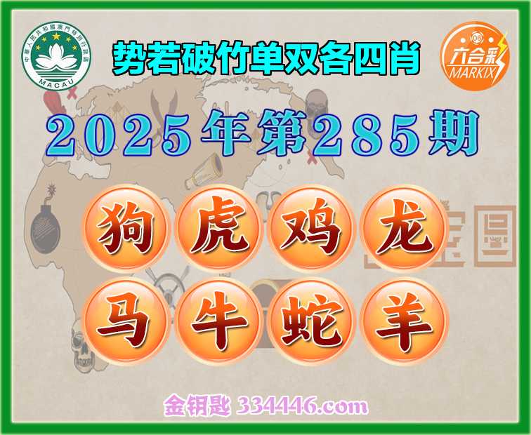 285期:《势若破竹》 🍔单双各四肖🍔开:马24准