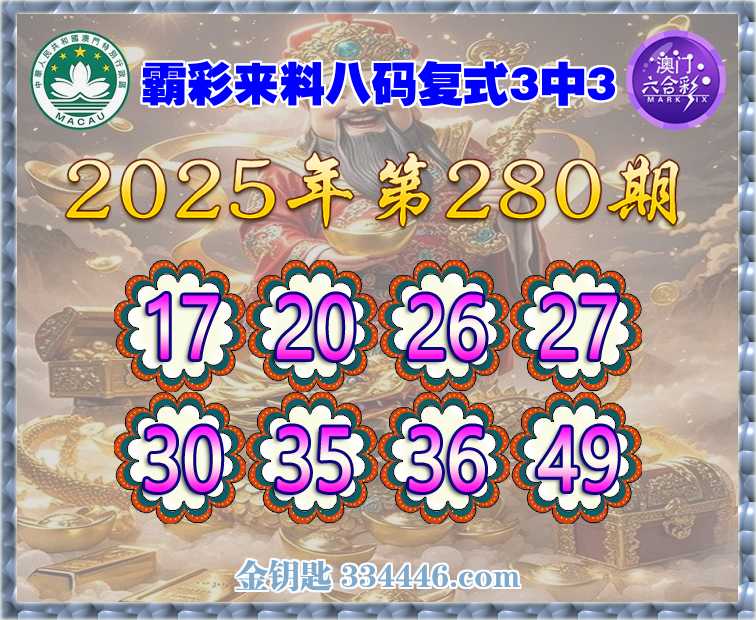 280期:《霸彩来料》 🥩八码复式3中3🥩