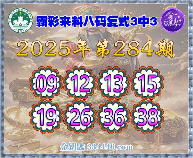 284期:《霸彩来料》 🥩八码复式3中3🥩