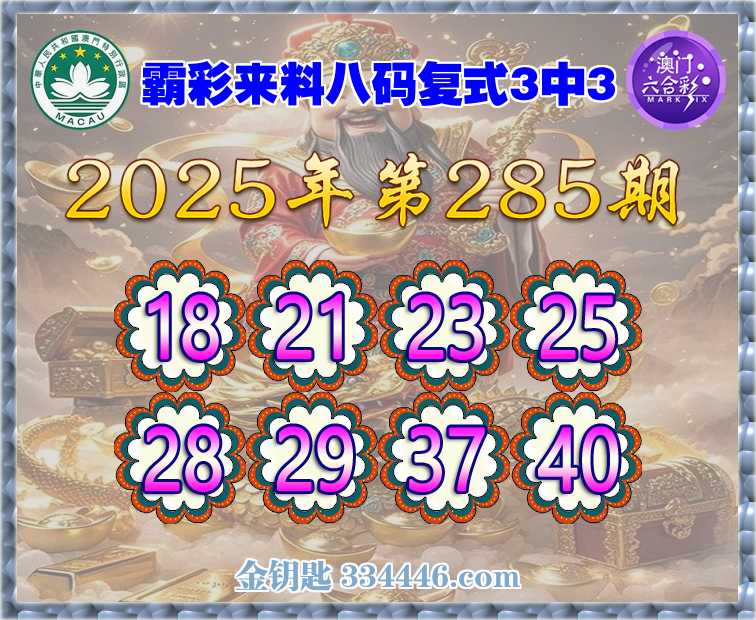 285期:《霸彩来料》 🥩八码复式3中3🥩