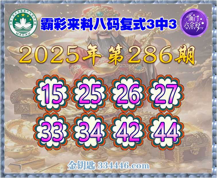 286期:《霸彩来料》 🥩八码复式3中3🥩