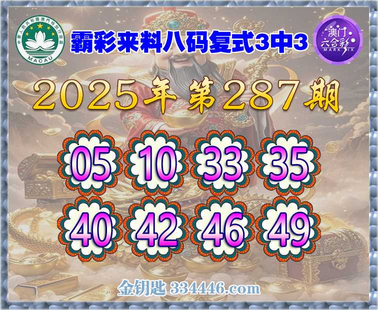 287期:《霸彩来料》 🥩八码复式3中3🥩