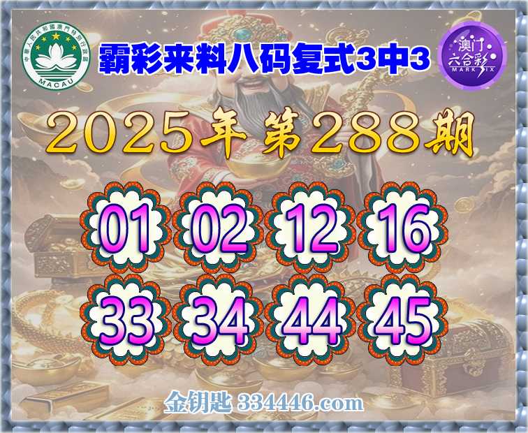 288期:《霸彩来料》 🥩八码复式3中3🥩