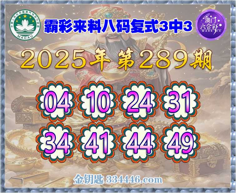 289期:《霸彩来料》 🥩八码复式3中3🥩