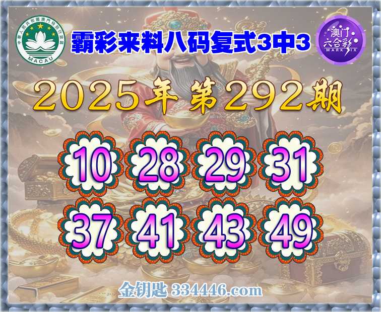 292期:《霸彩来料》 🥩八码复式3中3🥩
