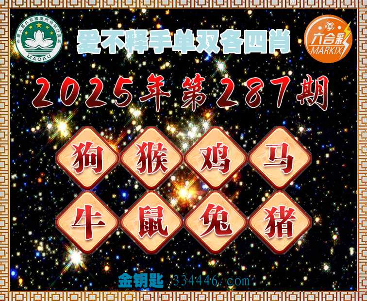 287期:《爱不释手》 ⛩️单双各四肖⛩️开:猴34准